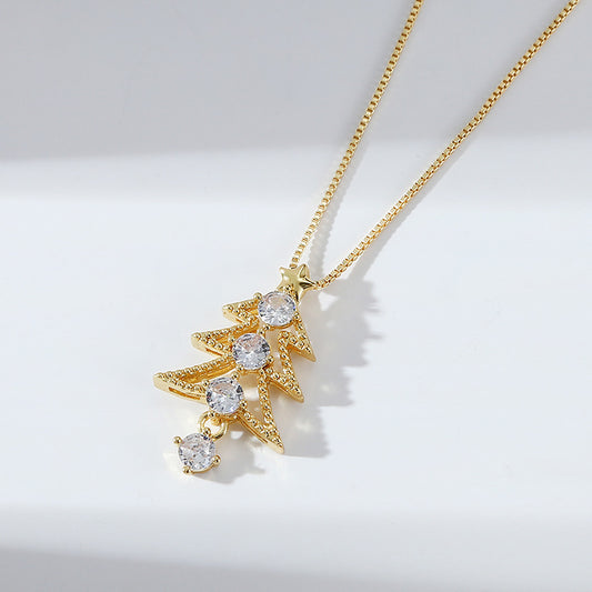 SISSLIA 2024 the New Copper Inlaid Zirconium Gold Plated Hollow Christmas Tree Pendant Fashion Christmas Gift