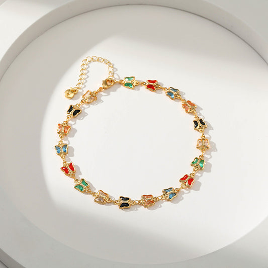Sisslia Hot Sales Colorful Butterfly Chain Anklet Summer Beach Charm Gold Plated Anklets For Women