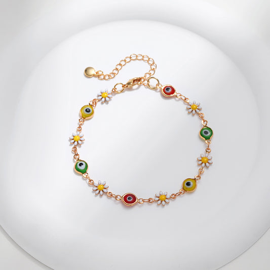 Sisslia Hot Selling Dainty Gold Plated Bracelet Lucky Turkey Eye Bracelet Colorful Red Blue Eye Aesthetic Jewelry