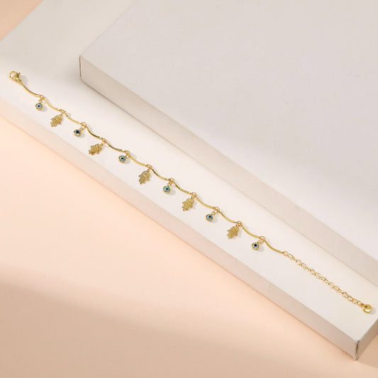 SISSLIA Hot Selling 18K Gold Adjustable Gold Chain Bracelets&Anklets Jewelry Copper Plated Eye Palm Charm Jewelry