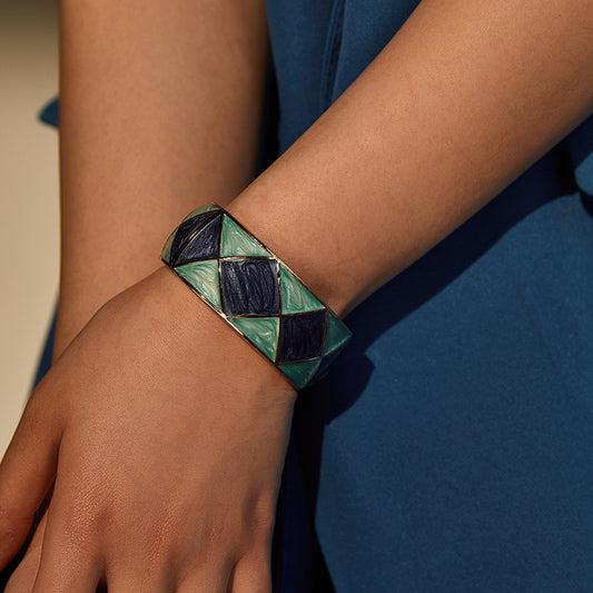 Sisslia Hot Sale Personality Oil Drop Square Pattern Cuff Bangles Exaggerated Metal Jewelry Bracelets For Women