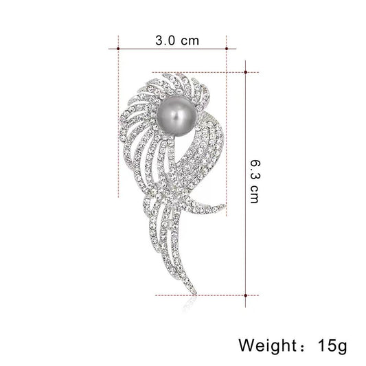 2023 Custom Wholesale Fashion Artificial Pearl Beads Silver Plated Crystal Flower Rhinestone Brooch For Women