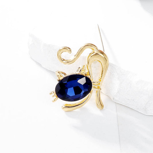 2023 Cute Personality Cat's Eye Brooch Metal Alloy Rhinestone Luxury Baroque Rhinestone Cat Women Brooch