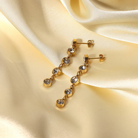 SISSLIA 14K Gold-Plated Stainless Steel Pendant Jewelry Set with Five Round Zircon Tassels Earrings for Women