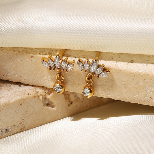 SISSLIA High Quality Niche Design Fine&18k Gold Crown White Zircon Earrings for Women