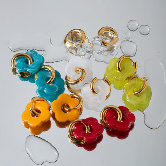 SISSLIA 18k Gold-Plated Stainless Steel Vintage White Flowers Not Fade Niche Design Earrings for Women