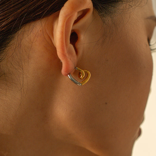 SISSLIA Trend Minimalist Geometry 18k Gold Stainless Steel Set Zircon Symmetrical Half Love Earrings for Women