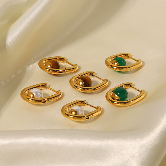 SISSLIA Retro Geometric Simple Design Sense Inlaid with Natural Green Agate Temperament All-matching Earrings