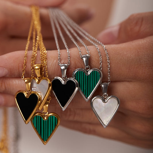 SISSLIA 18K Gold White Shell Green Peacock Stone Black Shell Love Pendant Titanium Steel Necklace Jewelry for Women