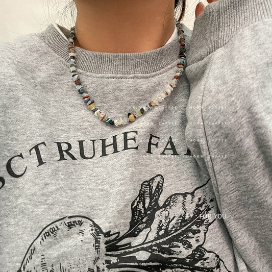 SISSLIA Vintage Sensen-Style Broken Stone Beaded Pastoral Ins Style Personality Collarbone Chain for Women