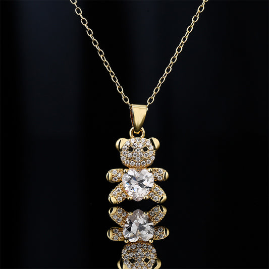 SISSLIA High Quality 2024 Trend New Arrival Women Necklace Lovely Bear Multicolored Rhinestone Diamond Pendant for Women