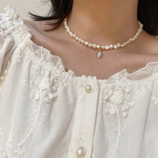 SISSLIA Moonstone Irregular Baroque Fresh Water Pearl Retro Palace Temperament Necklace for Women