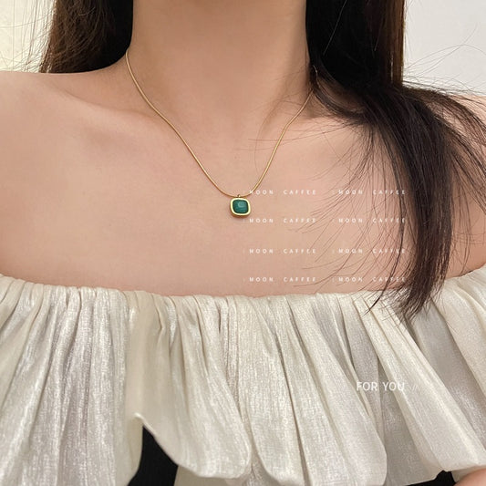 SISSLIA Non-Fading Titanium Steel High Quality Vintage Emerald Square Queen Flower Shell Necklace for Women
