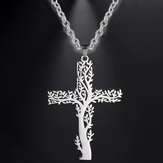 SISSLIA Fashion Creative Cross Necklace Stainless Steel For Women Choker Branches Tree of Life Design Pendant Necklace Jewelry